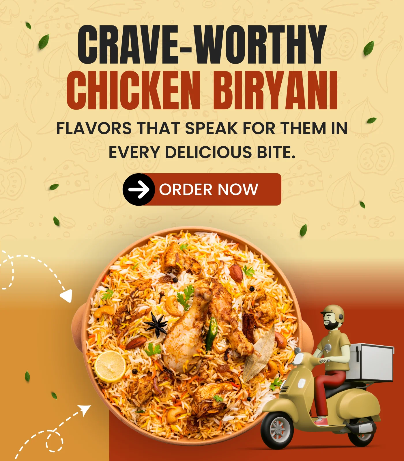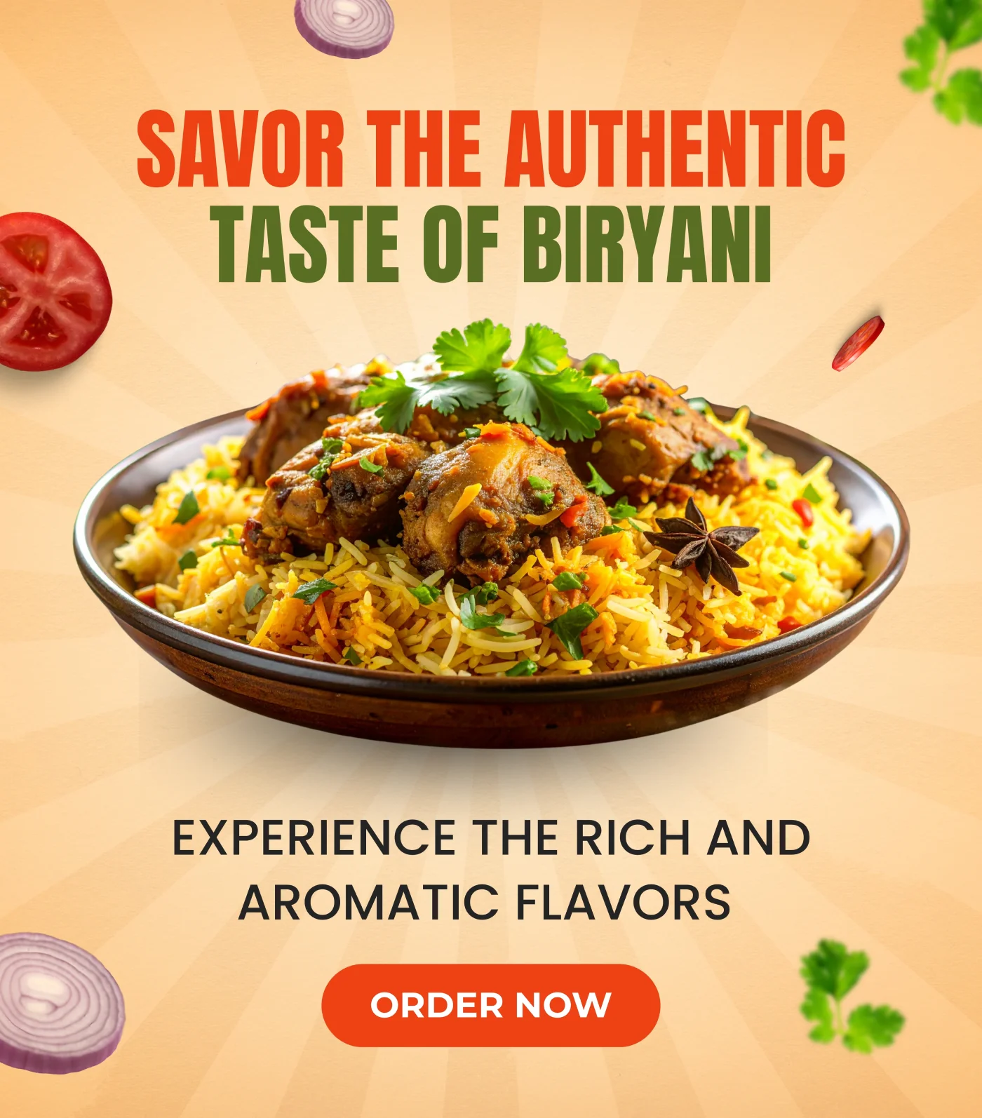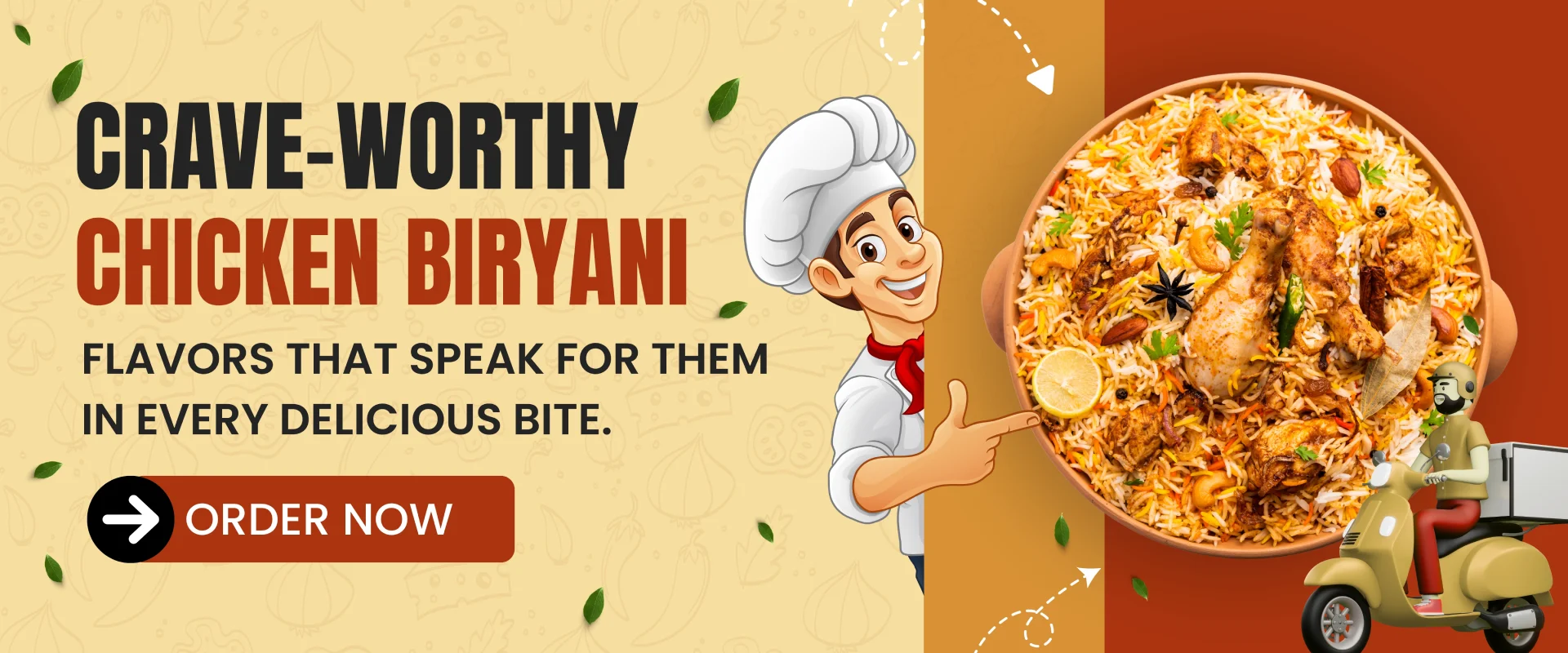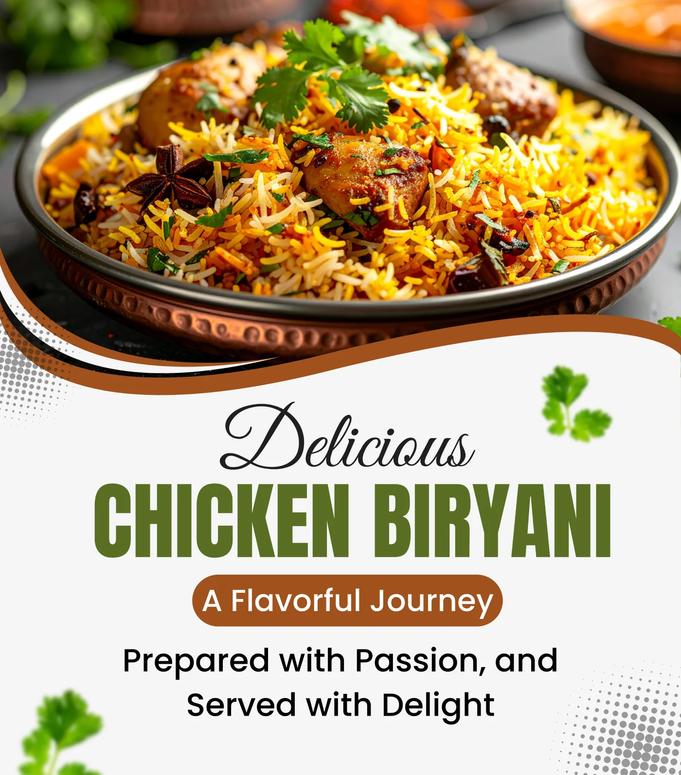Our vision is to make every meal an experience. We aim to offer high-quality, fresh biryani, made with love and delivered right to your home. We believe in using the finest ingredients and maintaining the authenticity of our recipes.